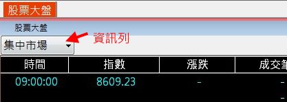 當勾選顯示資訊列功能時,可在揭示畫面上方看到出現一市場別選單,您可直接下拉選單來選擇所要的市場別資訊: