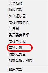 當勾選顯示資訊列功能時,可在揭示畫面上方看到出現一指數別選單,您可直接下拉選單來選擇所要的指數資訊: