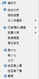 加入自選股:使用右鍵將個股加入自選群組中 。