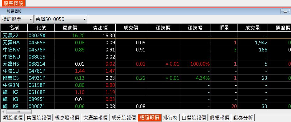 結束權證報價功能畫面,如果您想要再次觀看此功能,請再開啟功能視窗即可。