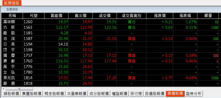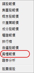 使用者可直接點下拉式選單選擇查看興櫃報價功能,顯示畫面如下圖: