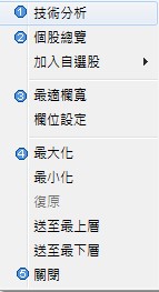 加入自選股:使用右鍵將個股加入自選群組中 。