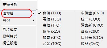 游標移至該功能可點選所出現選單上的選擇權商品資訊。