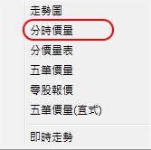 | 使用者在點分時價量功能後,進入分時價量即時資訊揭示畫面,顯示畫面如下圖: |
