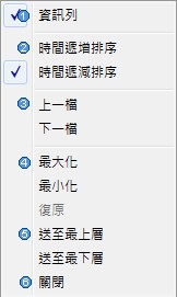 當螢幕開啟多個視窗格時,此功能提供使用者將欲觀看的資訊窗格固於螢幕的最上層,其它視窗放置於最下層,避免多視窗重疊影響所欲觀看的資訊。