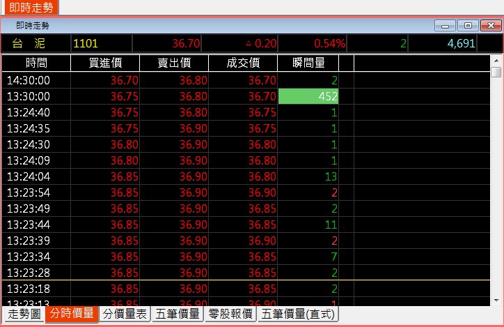 結束分時價量功能,如果您想要再次觀看此功能,請再開啟此功能視窗即可。