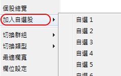 加入自選股:使用右鍵將個股加入自選功能, 。